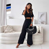 El paquete incluye: 1* conjunto de 2 piezas: top con cuello en V, pantalones de pierna ancha