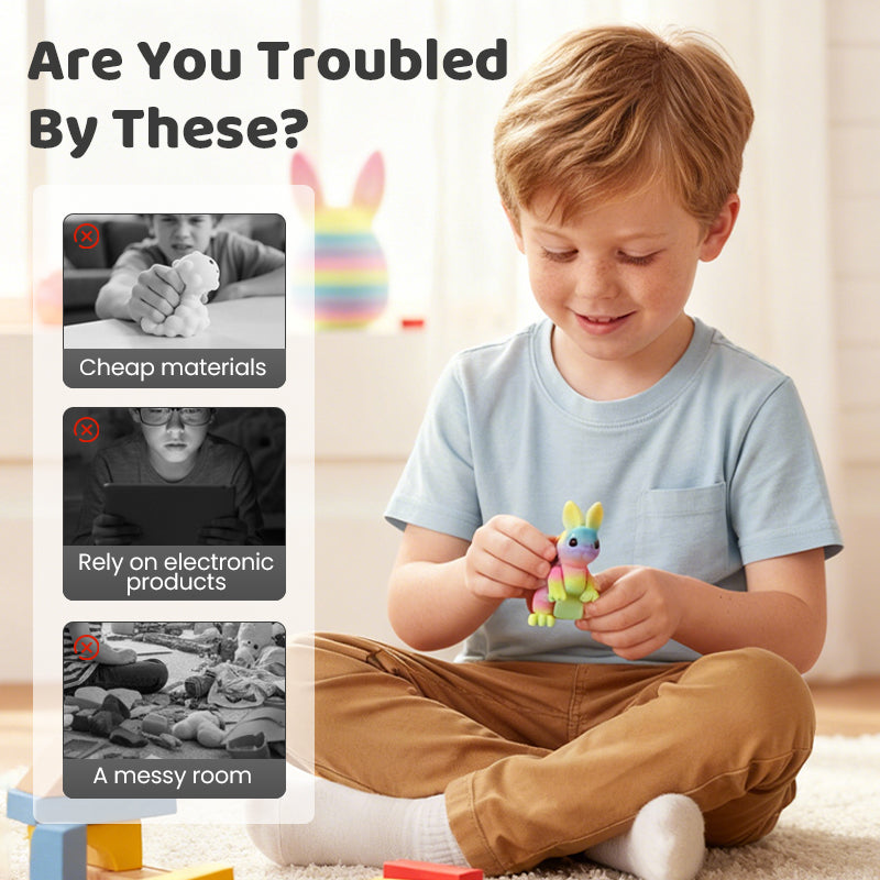 ARTICULATED BUNNY TOY - The charming bunny hidden inside is fully articulated, allowing for various fun poses. It also doubles as a satisfying fidget toy, providing sensory engagement and sparking imaginative play for all ages.