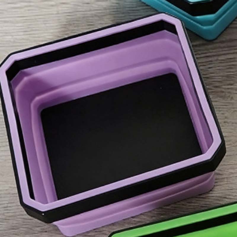 ZUSAMMENKLAPPBARES SILIKON-DESIGN: Klappen Sie das Tablett mühelos auf eine kompakte Größe zusammen, um es einfach in Ihrem Werkzeugkasten oder Ihrer Tasche zu verstauen. Es lässt sich in Sekundenschnelle ausklappen und bietet Ihnen bei Bedarf einen geräumigen Behälter.