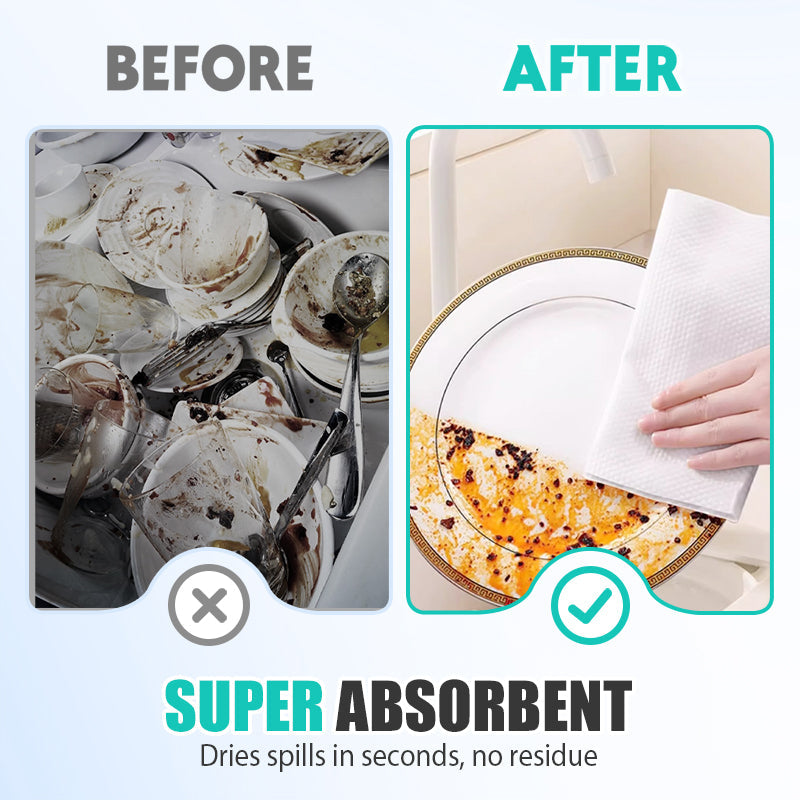 SOFORT DURSTIG, SCHNELL TROCKEN - Beobachten Sie, wie Verschüttetes und Spritzer im Handumdrehen verschwinden. Dank seiner bemerkenswerten Saugfähigkeit nimmt es sowohl Öl als auch Wasser mühelos auf und lässt sich leicht auswringen, sodass Ihre Oberflächen ohne großen Aufwand perfekt sauber und trocken bleiben.