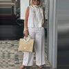 SIMPLE Y ELEGANTE: Un diseño simple y atemporal que irradia elegancia y sofisticación. El top de cuello redondo sin mangas combina a la perfección con los pantalones de pierna ancha para lograr un look elegante y sofisticado.