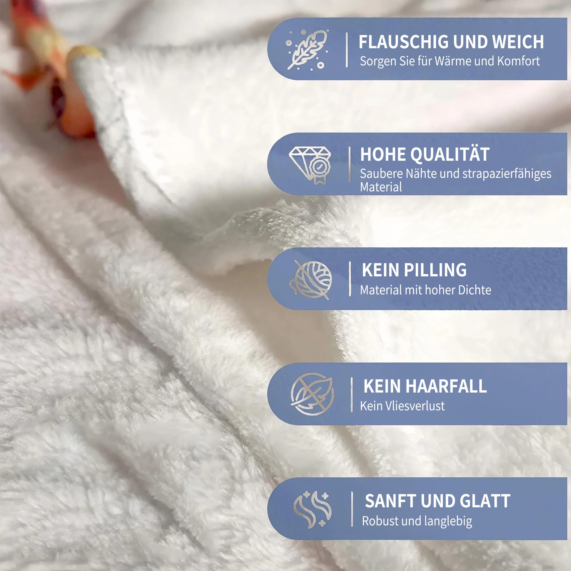 Hergestellt aus hochwertigem Material umhüllt Sie diese Decke mit samtweicher Weichheit, die auch für die empfindlichste Haut sanft ist. Trotz ihres kuscheligen Gefühls ist sie leicht und atmungsaktiv – hält Sie warm, ohne dass Sie überhitzen. Perfekt für ganzjährigen Komfort.