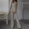 🔥Sconto del 51%💕Completo due pezzi da donna. Giacca senza maniche e pantaloni con scollo a V e chiusura frontale con bottoni.
