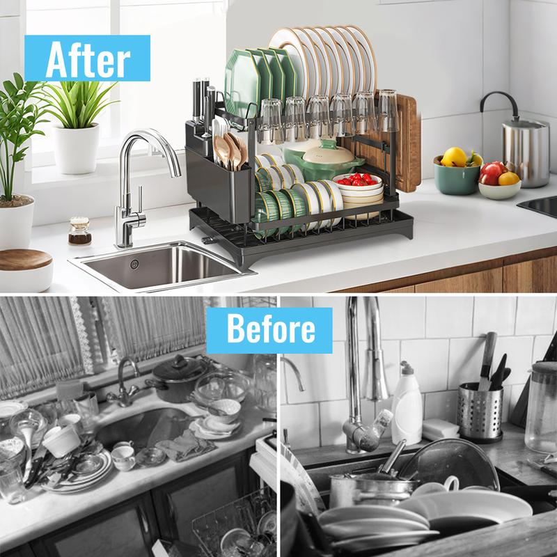 💎 50% RABATT! 💎 2-stufiges Geschirr-Abtropfregal – Mit Ablaufschale, Platzsparend & Ideal für Familienküchen