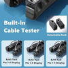 Agebauten Kabeltester - Betrieb vun enger AG13/LR44/A76 Knäppchenbatterie (déi NET abegraff ass), geliwwert mat Instruktioun. D'LED-Luucht weist den Zoustand vum Drotverbindungsverbindungsverhältnis un, testt souwuel UTP- wéi och STP-Kabelen (RJ45, RJ12, RJ11), LED #1~#8 weist d'Konfiguratioun vum 8-Pin-Drot. Souwuel d'Batterie wéi och den Tester sinn eraushuelbar.