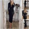 V-HALS LAANG ÄRMLEN: Den flattéierende V-Ausschnëtt a Kombinatioun mat den elegante laangen Ärmelen kreéiert e sensuellen awer raffinéierte Look, wat dëst Kleed zu enger villsäiteger Wiel fir souwuel lässeg wéi och formell Occasiounen mécht.