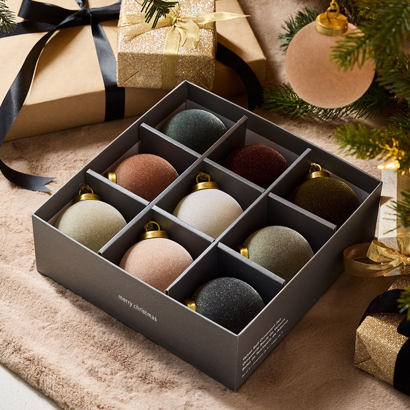 ELEGANTES FLOCKDESIGN: Jedes Ornament verfĂŒgt ĂŒber eine flockige OberflĂ€che, die ein anspruchsvolles visuelles und taktiles Erlebnis fĂŒr Ihre festlichen Arrangements bietet.