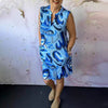 Liten kjole med kreativt trykk, sirkulær utringning og V-front
