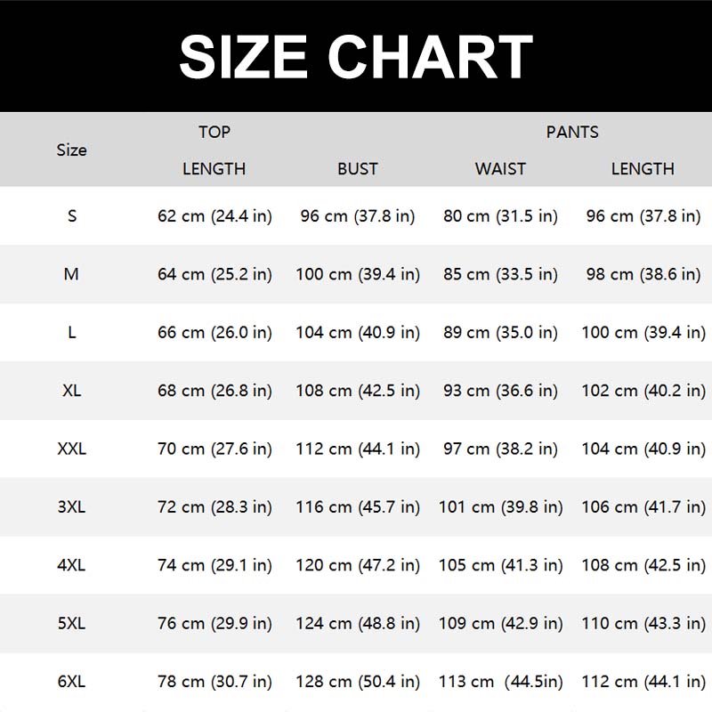 Größen: S, M, L, XL, XXL, XXXL, XXXXL, 5XL, 6XL