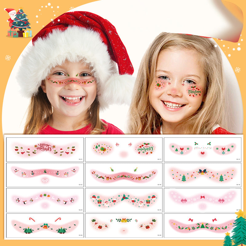 Package Includes: 1 * 12 Sheets Christmas Temporary Face Tattoos for Kids
