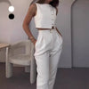 Pakken inneholder: 1 * Elegant 2-delt antrekk til kvinner uten ermer og Bukser med høy midje
