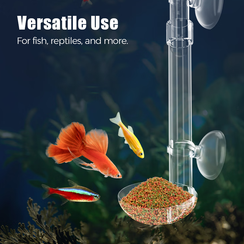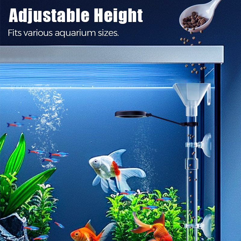 Der schwimmende Ring hält Oberflächenfutter perfekt für Goldfische ein, während das verstellbare Rohr Sinkfutter präzise an bodennähere Tiere wie Garnelen liefert. Die transparente Konstruktion lässt Sie jeden Füttervorgang überwachen – verhindert Futterverschwendung und hält die Wasserqualität optimal.
