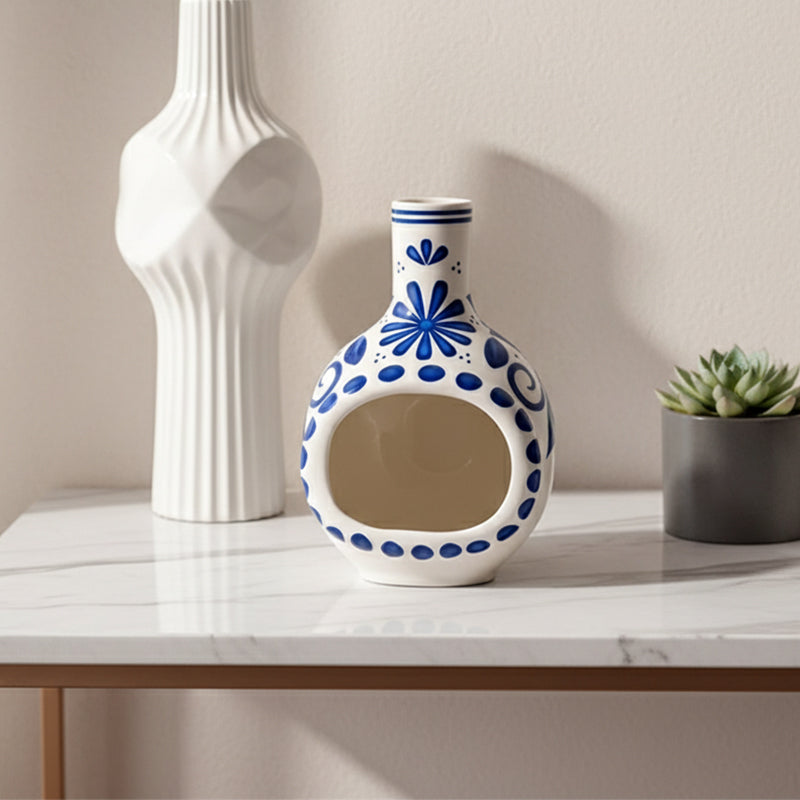 ELEGANTER DEKORATIVER AKZENT - Mit seinem zeitlosen blau-weißen Blumenmuster ist dieser Brenner ein wunderschönes Deko-Element für Ihr Zuhause. Er verleiht jedem Meditationsraum oder Wohnbereich einen Hauch von Ruhe und Eleganz.
