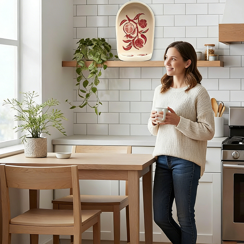 DER Segen des Granatapfels: Der Granatapfel steht seit jeher für Fruchtbarkeit, Überfluss und Wiedergeburt. Er erinnert uns daran, dass aus jedem Ende neues Leben entsteht. Verwenden Sie ihn als Kerzenhalter für Ihr tägliches Dankbarkeitsritual oder bewahren Sie darin kleinen Schmuck auf, der persönliche Meilensteine markiert.