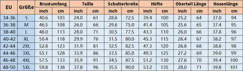 Größentabelle (S-5XL):