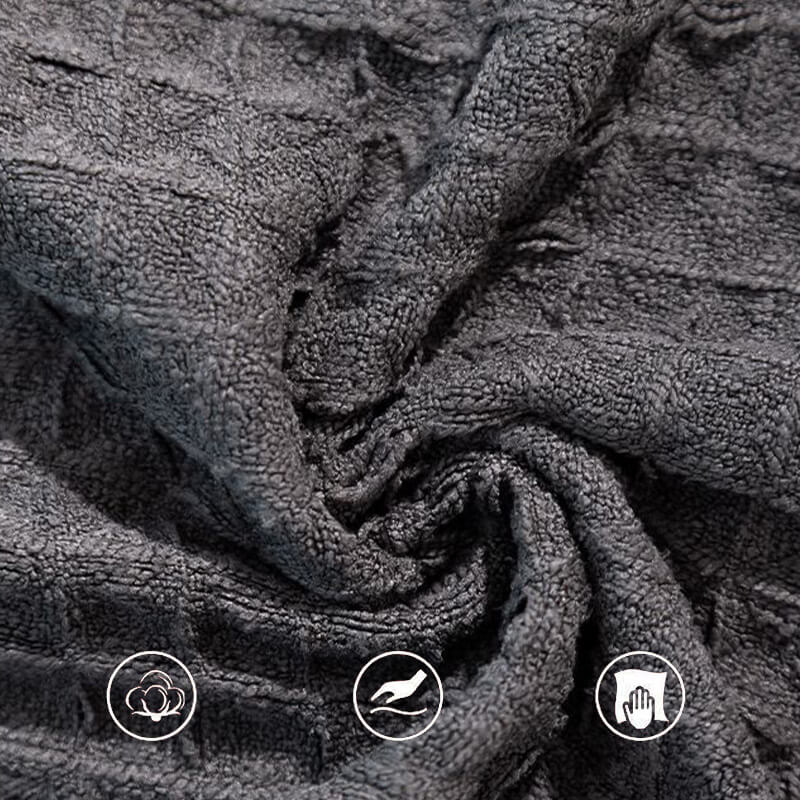 Dieses Material ist poröser als Baumwolle, wodurch sie sehr saugfähig und atmungsaktiv sind, viel mehr als Baumwollhandtücher. Professionelles Waffelgewebe hält mehr als das 8-fache seines Gewichts an Flüssigkeiten, trocknet aber 2-fache schneller als traditionelle Fasern. Hakenanhänger, schnelles Trocknen beim Aufhängen, um Geruchsbildung zu vermeiden