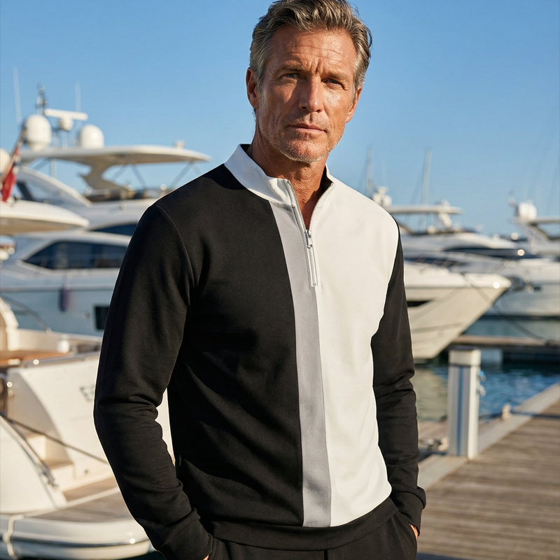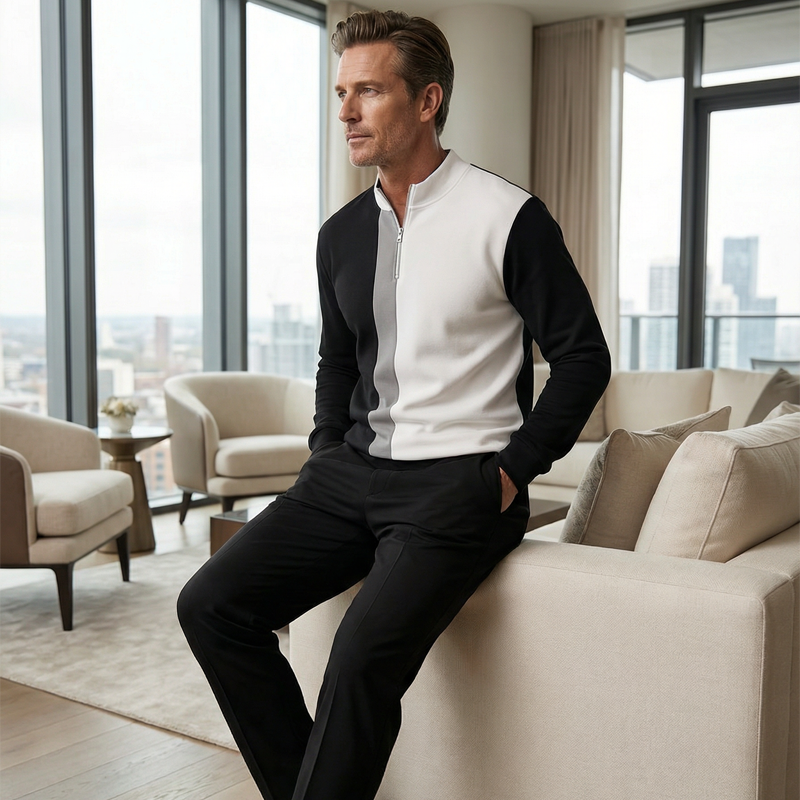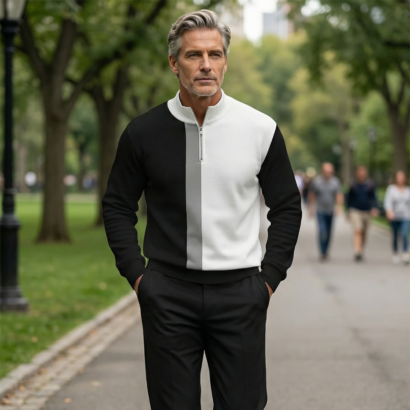 👕 50% RABATT! 🔥 Herren Color-Block Trainingsanzug-Set mit Viertel-Reißverschluss – Stilvolles Design, Bequeme Passform & Perfekt für Sport 🏃