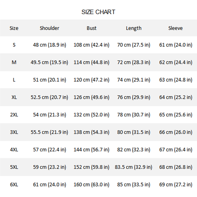 Größe: S, M, L, XL, 2XL, 3XL, 4XL, 5XL, 6XL