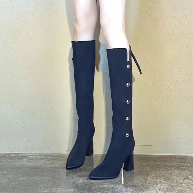 Spitze Spitze Klotzige Ferse Warme Lange Stiefel