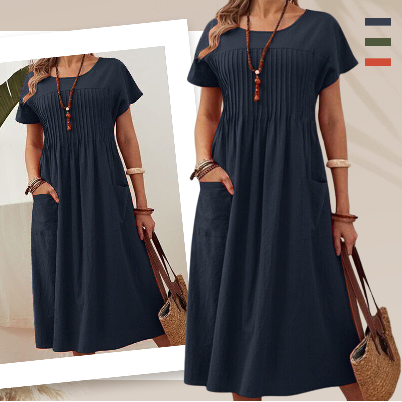 👗Faltenkleid für Damen mit kurzen Ärmeln und Taschen💃