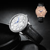 Diese Vintage-Uhr mit Gravur von Eight Horse ist ein zeitloser Klassiker. Unter der Krone ist ein tiefblauer Edelstein mit hoher Klarheit, hoher Transparenz und Kratzfestigkeit eingebettet, der Luxus und Eleganz ausstrahlt.