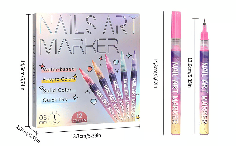 12 kräftige, leuchtende Farben: Diese Acryl-Farbstifte sind in einer Reihe satter, leuchtender Farben erhältlich, die Ihre Nagelkunst zum Strahlen bringen. Dank ihrer präzisen 0,5 mm feinen Spitze eignen sie sich perfekt für filigrane Designs und detailreiche Akzente auf Ihren Nägeln.