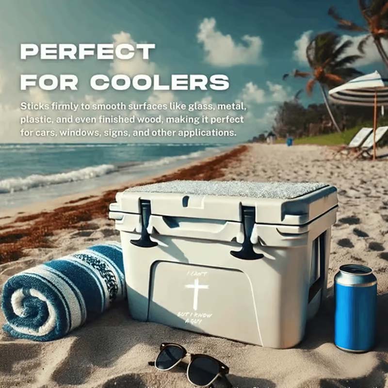 MOTIVIERENDE BOTSCHAFT: Zeigt den kraftvollen Spruch „I CAN'T BUT I KNOW A GUY“ auf einem Kreuzmotiv platziert, für eine positive und inspirierende Aussage.