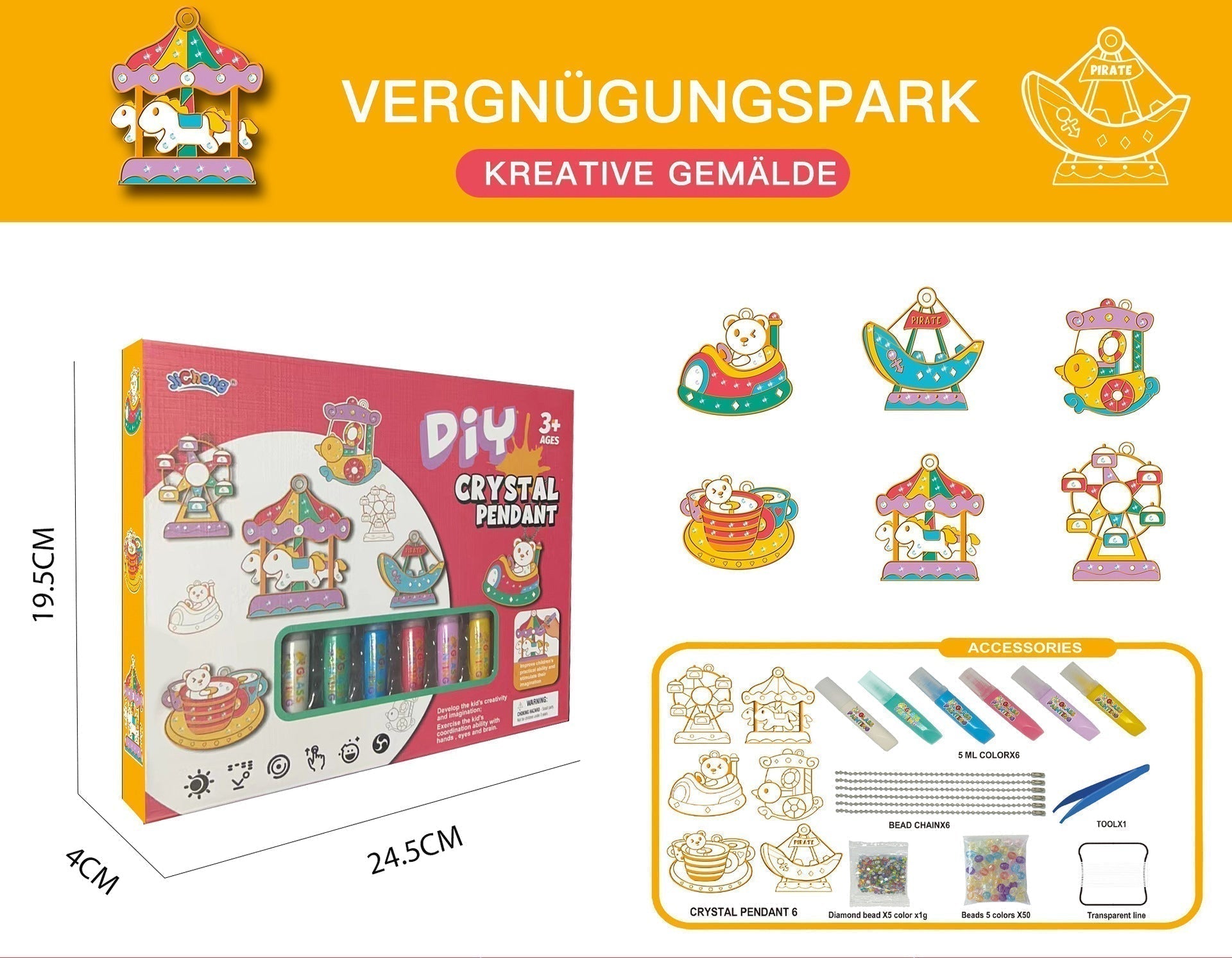 Im Paket enthalten:Kristallanhänger6 + Farbmalerei6 + Kette6 + Pinzette1+ 3 Packungen Diamanten +1 Packung farbige Perlen +Schnur*1