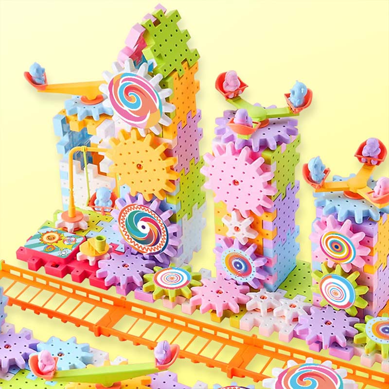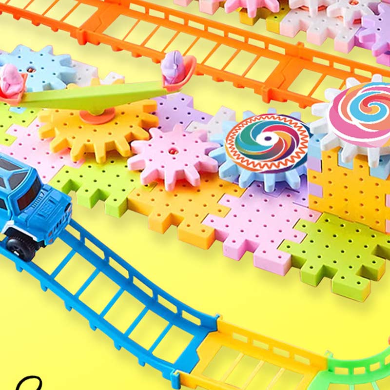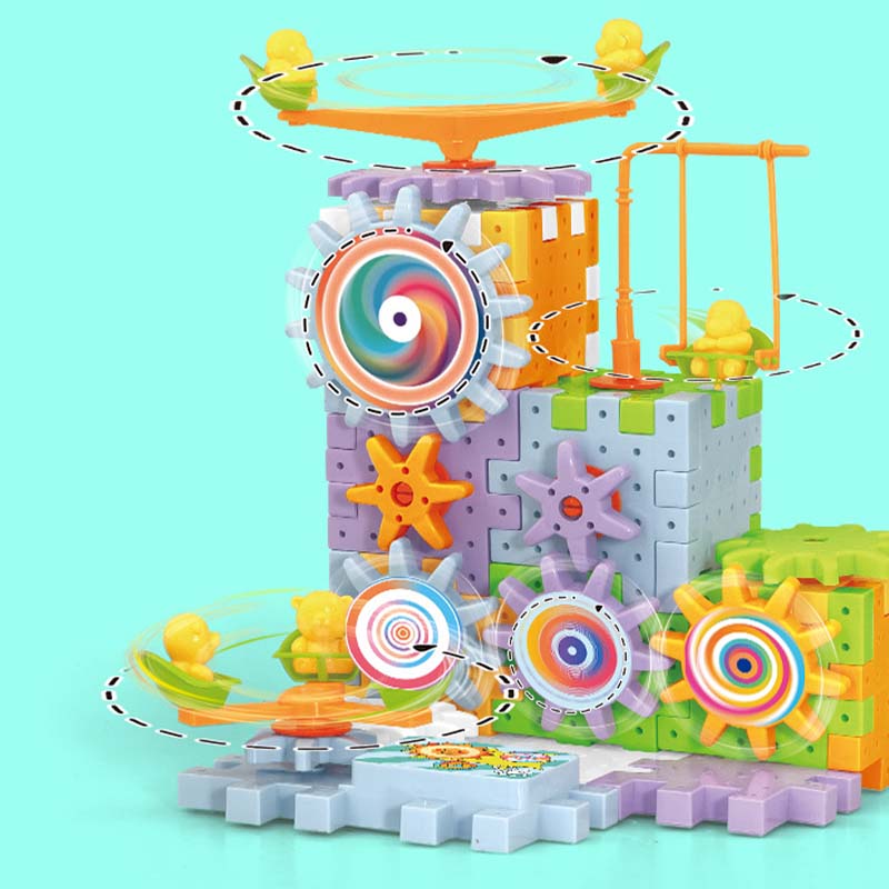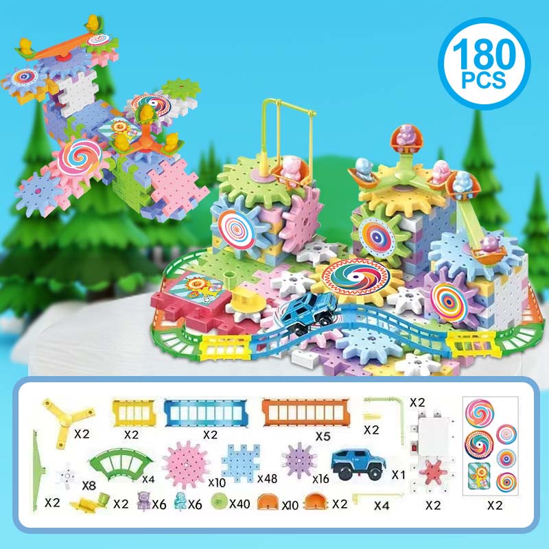 UNENDLICHE KREATIVITÄT - Gehen Sie über einfaches Stapeln hinaus. Mit diesem dynamischen Bausatz können Kinder komplexe, bewegliche Konstruktionen mit Zahnrädern und Schienen bauen und ihrer Fantasie freien Lauf lassen, um alles Mögliche zu erschaffen, von Karussells bis hin zu ganzen Vergnügungsparks.