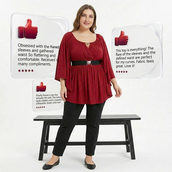 Lieferumfang: 1 * Damenmode-Tunika mit ausgestellten Ărmeln