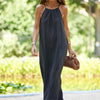 LÖS OCH AVSLAPPEN PASSFORM: Denna klänning med halterneck är lös och bekväm, vilket garanterar en avslappnad och bekväm passform. Den böljande designen möjliggör enkel rörelse och garanterar komfort hela dagen, perfekt för varma sommardagar och avslappnade utflykter.