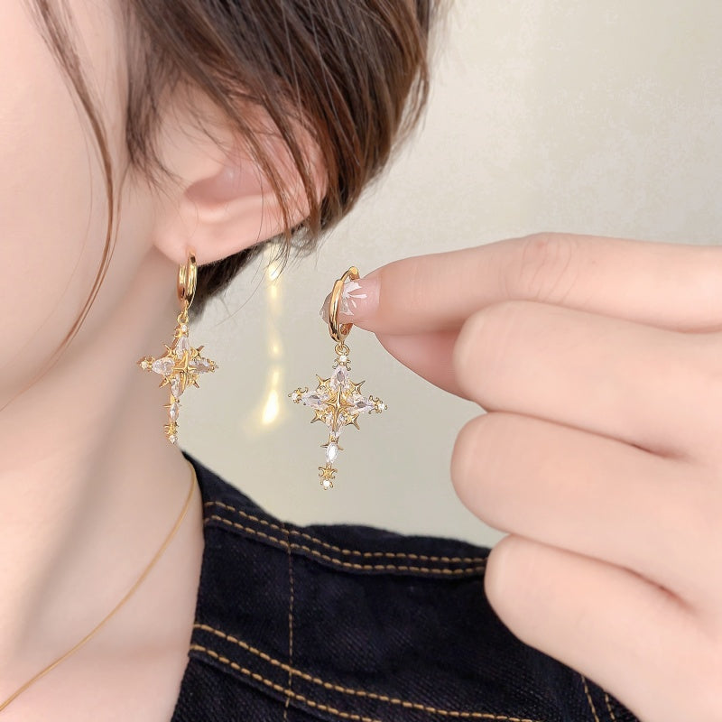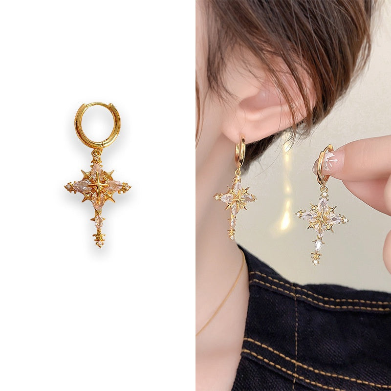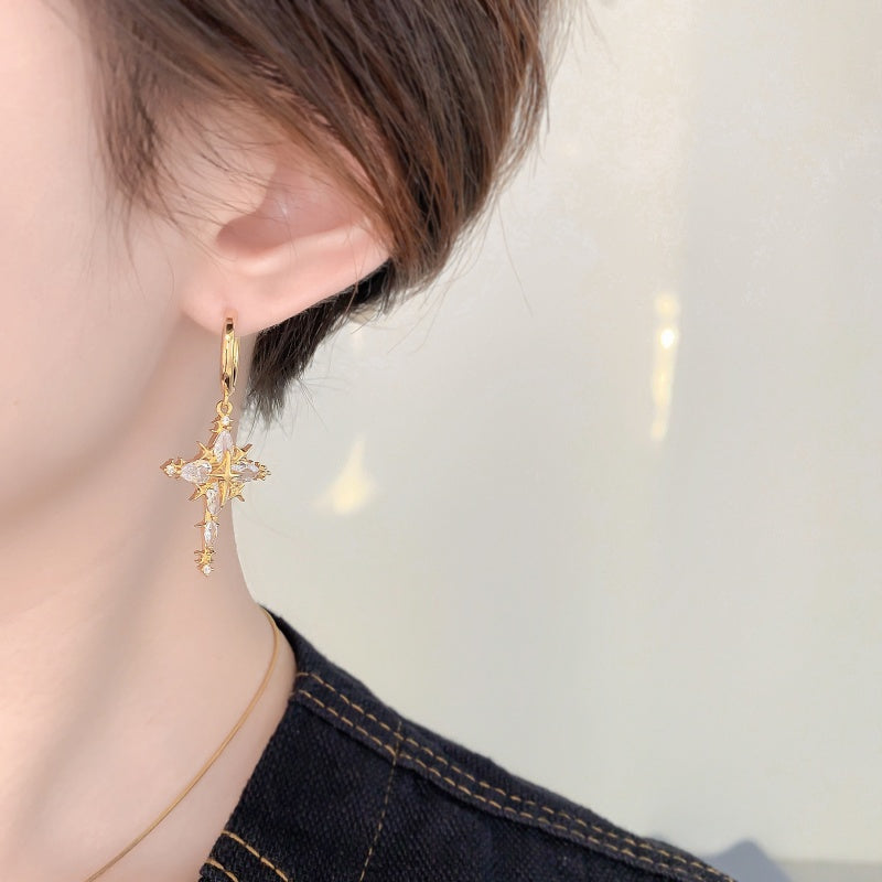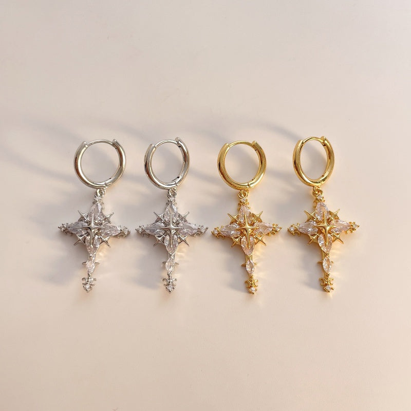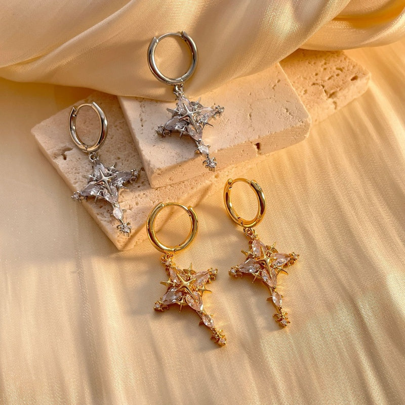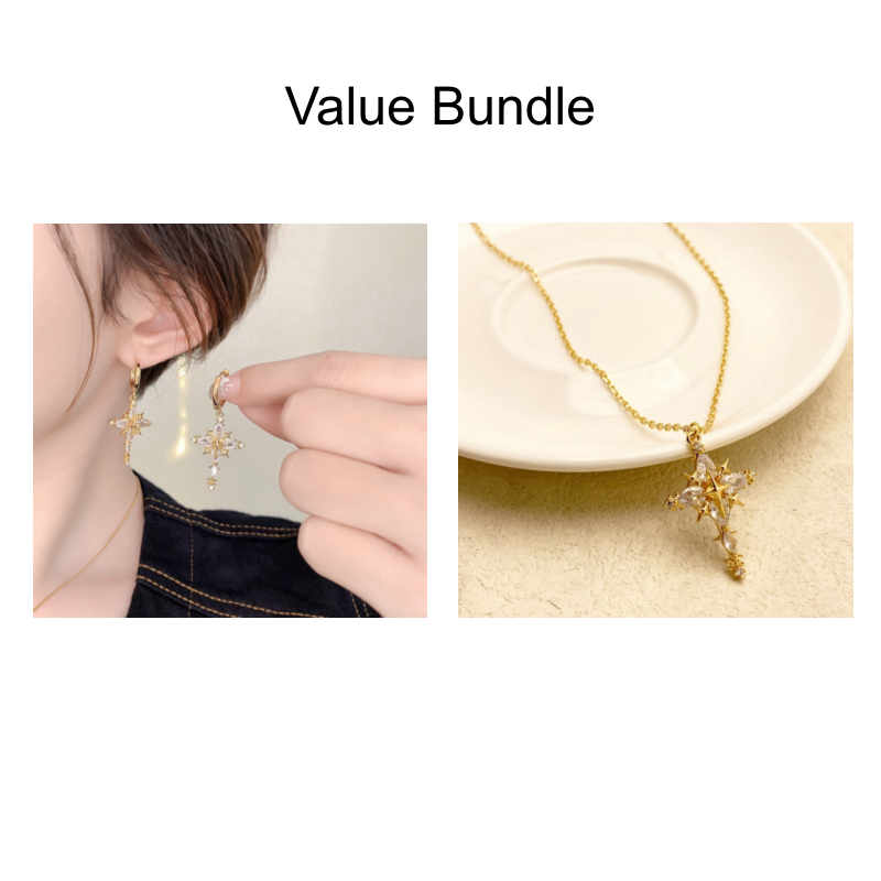 Lieferumfang: 1 * funkelnde Kreuz-Ohrringe/Halskette/2-teiliges Set