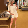 CHICHE STREIFENDETAILS FÜR EIN SPORTLICHES AUSSEHEN: Stylische schwarze Streifen an Ärmeln und Seiten der Shorts verleihen diesem lässigen Set einen modernen, sportlichen Look für den Alltag.