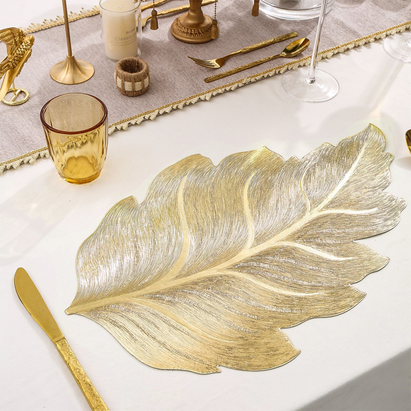 ELEGANTES 3D-BLATTGOLD-DESIGN: Diese Tischset verfügt über ein atemberaubendes 3D-Blattgold-Design, das jedem Esstisch oder jeder Tischdekoration einen Hauch von Luxus und Raffinesse verleiht. Perfekt für formelle oder zwanglose Anlässe.